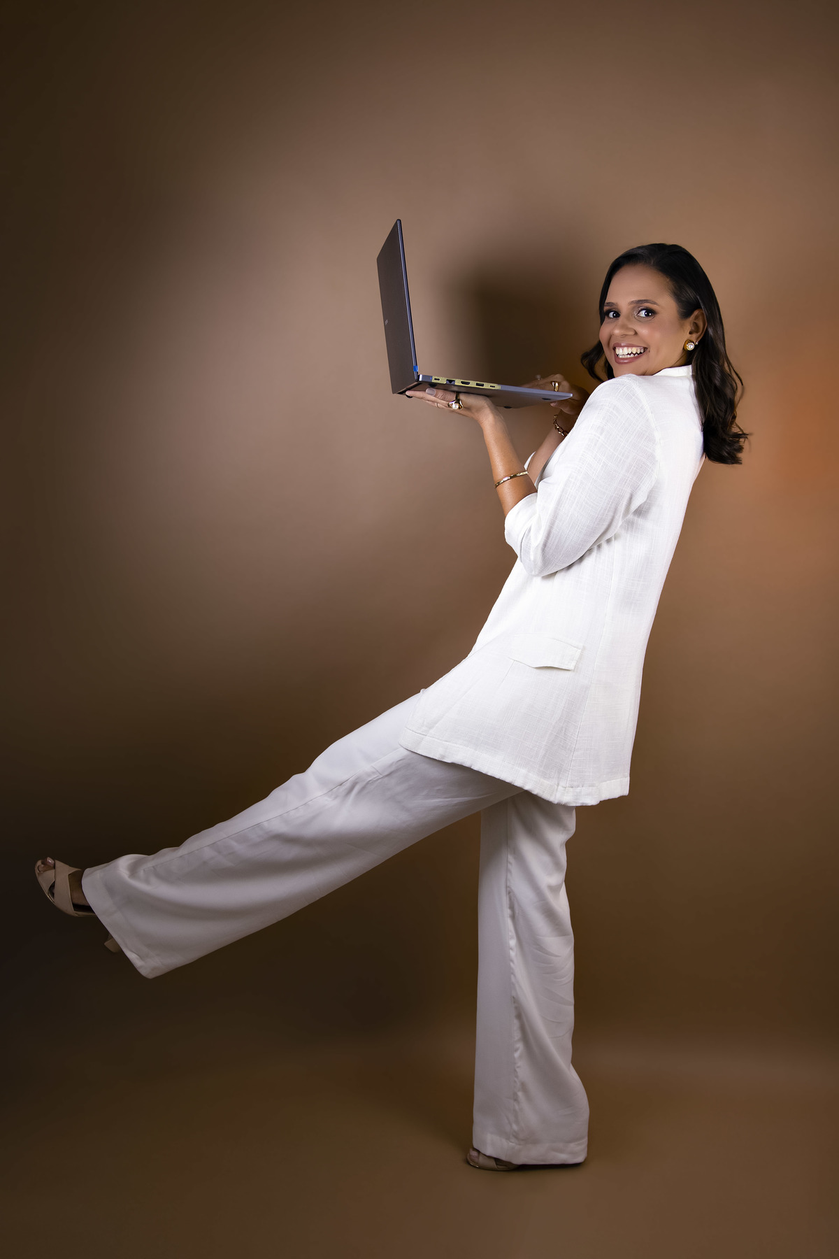 Para isso, adicionamos elementos visuais que comunicam sua essência de forma assertiva, com looks escolhidos para expressar quem ela é e refletir seu estilo único. Essas fotografias serão utilizadas em seus criativos, materiais de trabalho e publicidade, reforçando sua marca com autenticidade e propósito.