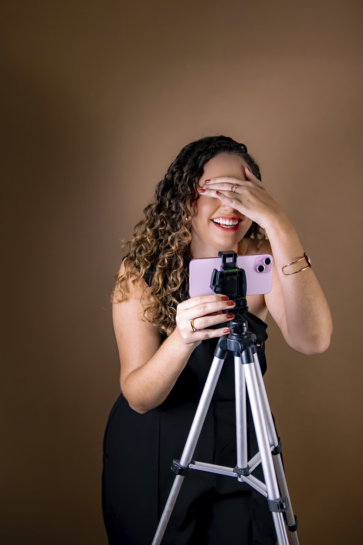 Criamos um ensaio estratégico e criativo, com elementos que refletem sua atuação no marketing e na publicidade – afinal, para gerar valor aos clientes, é essencial começar por si mesma.